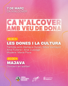 En el marc del 8M, Can Alcover acull una nova edició de la iniciativa de l’Obra Cultural Balear (OCB) per a donar visibilitat a les artistes de Mallorca amb activitats encapçalades per dones del món cultural de les Balears.