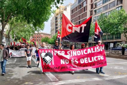 La CGT i la CNT han organitzat una manifestació unitària que ha sortit de la plaça d'Espanya i ha acabat als jardins de l'Hort del Rei, a Palma.