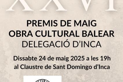 L’OCB d’Inca lliuirarà els Premis de Maig 2025 en un acte al Claustre de Sant Domingo