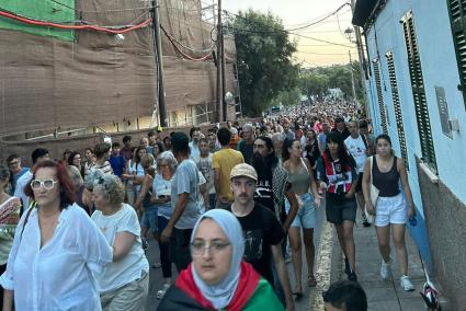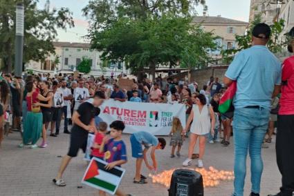 A Sineu unes 450 persones han cobert el recorregut pels carrers del cemtre del poble i abans de llegir el manifest s'ha escrit el nom de Palestina amb espelmes enceses.