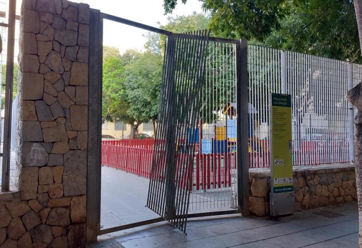 La porta del parc Jorge Luis Borges de Pere Garau ha aparegut rebentada | Foto: Flipau amb Pere Garau