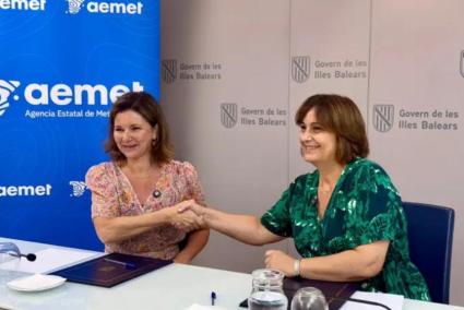 La vicepresidenta segona del Govern i consellera de Presidència, Coordinació de l'Acció de Govern i Cooperació Boja, Antònia Maria Estarellas, i la presidenta de l'Agència Estatal de Meteorologia (AEMET), María José Rallo, han signat aquest dimarts 12 d'agost un conveni de col·laboració per millorar la predicció meteorològica i afavorir la resposta davant dels fenòmens meteorològics de les Illes Balears.