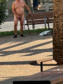 Denuncien que un home nuu es passeja per la plaça de les Columnes de Palma