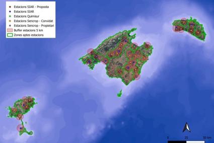 Actualment, la Conselleria d'Agricultura, Pesca i Medi Natural disposa de 16 estacions a les Illes Balears, que cobreixen el 70% de tot el territori de l'arxipèlag. L'objectiu és aconseguir una cobertura total del territori amb la implantació de cinc estacions més, previstes als pressupostos del 2026. En concret, serien tres a Mallorca, una a Menorca i una a Eivissa. A més, el Govern estudia la possibilitat d'incorporar-hi sensors d'humitat de sòl, fet que permetrà aprofitar al màxim la informació que ofereix aquesta xarxa d'estacions.