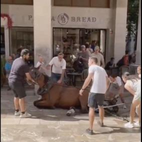 Aquest dissabte s’ha produït l’enèssim incident relacionat amb el maltracte que pateixen els cavalls que són obligats a arrossegar galeres pel casc antic de Palma.