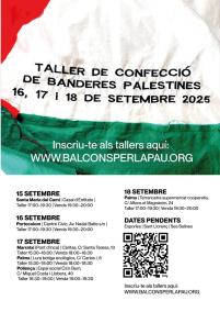 A partir de dia 15 de setembre fins a dia 18, es duran a terme arreu de Mallorca un seguit de tallers de confecció i venda de banderes palestines. El calendari confirmat per ara és el següent: