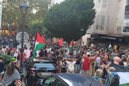 Unes 500 persones s'han concentrat aquest dissabte a Palma per reclamar protecció a la Flotilla Global Sumud i en contra els atacs d'Israel a Gaza.