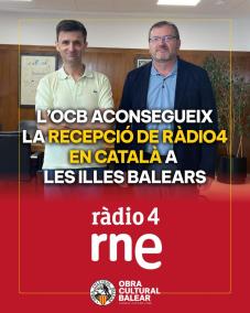A partir de la matinada del primer d’octubre es rebrà a les Illes Balears Ràdio 4. L’emissora en català de la Ràdio Nacional d’Espanya, es podr+a escoltar a través de la TDT, gràcies a les gestions de l’Obra Cultural Balear.