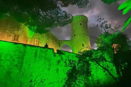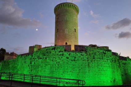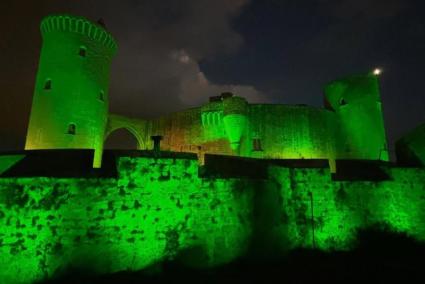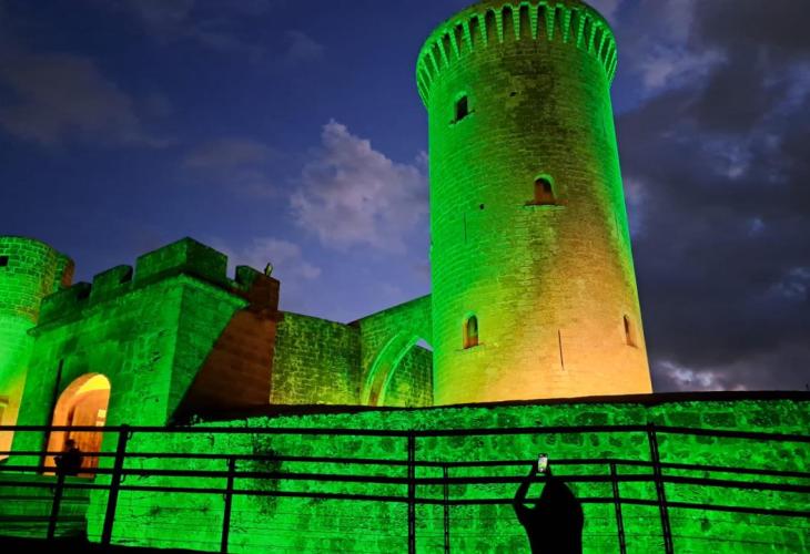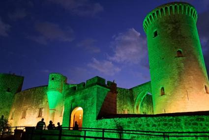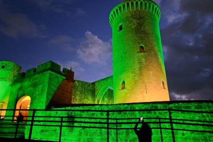 Espectaculars imatges del castell de Bellver il·luminat de verd per l’artritis
