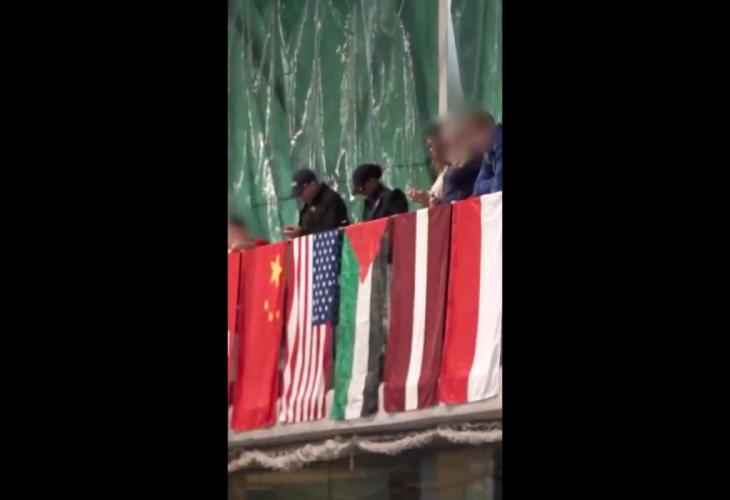 Imatge del vídeo difós en què es veu la bandera de Palestina devora la dels EUA | Foto: Ciutadans per Palestina/X