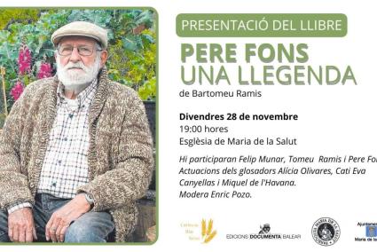 Aquesta obra serà presentada a Maria aquest divendres 28 de novembre a les 19.00 hores a l'església de Maria de la Salut. On un elenc de glossadores com Alícia Olivares i Cati Eva Canyellas i del mariando Miquel de l'Havana, a més del llorità i gran divulgador de la cultura popular Felip Munar, acompanyaran a l'autor Tomeu Ramis i al protagonista el mossèn Pere Fons, un acte coordinat pel col·lectiu Blat Xeixa, amb el suport de l'ajuntament del poble i de la parròquia Local.