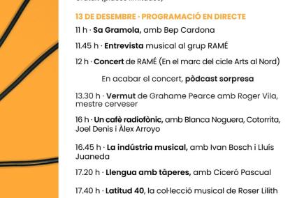 A les 12 h, el grup Ramé pujarà a l’escenari per a oferir un concert que forma part del cicle Arts al Nord, una actuació que també es retransmetrà en directe a través de Ràdio Far. En acabar el concert, el públic podrà gaudir d’un pòdcast sorpresa, especialment concebut per a aquesta cita i un vermut especial de Grahame Pearce, conduït pel mestre cerveser Roger Vila.