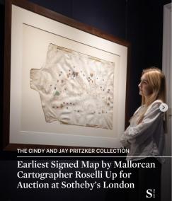 «Les ‘cartes portolanes’ varen marcar un punt d'inflexió en la cartografia. Datada el 1447, aquests mapes il·luminats són els més antics dels deu mapes de navegació signats per Petrus Roselli, el membre més prolífic de l'escola cartogràfica mallorquina», així presenta la coneguda casa de subhastes Sotheby's una de les ‘joies’ que fa comptes subhastar aquest dimarts 9 de desembre.