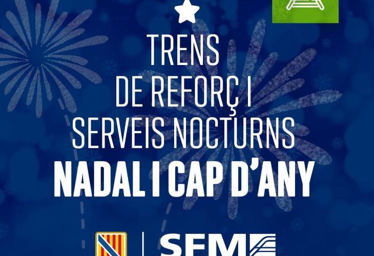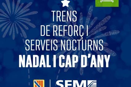 Serveis Ferroviaris de Mallorca (SFM) oferirà serveis especials nocturns tant per a la nit de Nadal com per a la nit de Cap d'Any per a poder gaudir de transport còmode i segur en aquests vespres festius, i es repeteix el servei iniciat l’any 2023 per a aquests dies, quan per primera vegada es varen programar serveis especials nocturns per a la nit de Nadal des que existeix SFM. Com a novetat, enguany s'amplia el servei per al dia de Nadal, amb més trens. Igualment, així com es va fer per primera vegada l'any passat, s'oferirà més servei de trens els dies 26 de desembre i 1r de gener.