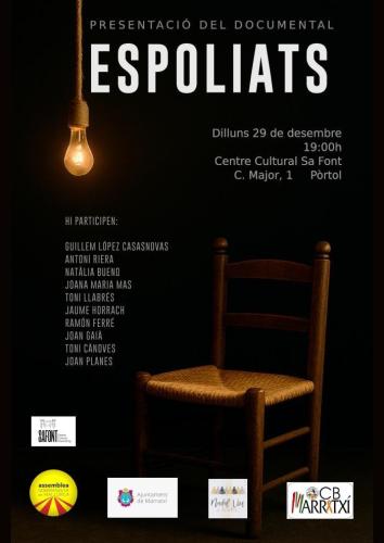 El pròxim dilluns, dia 29 de desembre, a les 19 hores, l’espai de cultura Sa Font de Pòrtol (carrer Major, 1) acull la presentació del documental Espoliats. Aquesta activitat s’emmarca dins la celebració de la Festa de l’Estendard 2025 a Pòrtol.