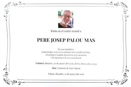 Aquest diumenge ha mort el matemàtic, físic, escriptor, docent, lluitador per la Llibertat i expresident de l’OCB d’Esporles, Pere Josep Palou i Mas, a l’edat de 70 anys.