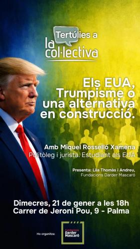La sessió comptarà amb la participació de Miquel Rosselló Xamena, politòleg i jurista, estudiant als EUA, que compartirà una anàlisi de primera mà sobre el context polític i social actual, aportant eines per a entendre’l amb perspectiva crítica.