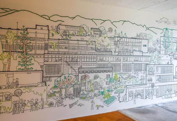 La Universitat de les Illes Balears (UIB) ha inaugurat el mural 'Actuem ara! La UIB davant l’emergència climàtica!', realitzat a través de l’Oficina de Cooperació al Desenvolupament i Solidaritat (OCDS), amb el suport del Vicerectorat de Relacions Internacionals, Solidaritat i Justícia Global i la col·laboració d’entitats ecosocials com Justícia Alimentària.