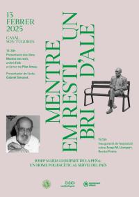 Aquest divendres, 13 de febrer, a les 18.30 hores, el Casal Son Tugores d’Alaró acull la presentació del llibre Mentre em resti un bri d’alè. Josep Maria Llompart de la Peña: un home polifacètic al servei del país a càrrec de Pilar Arnau.