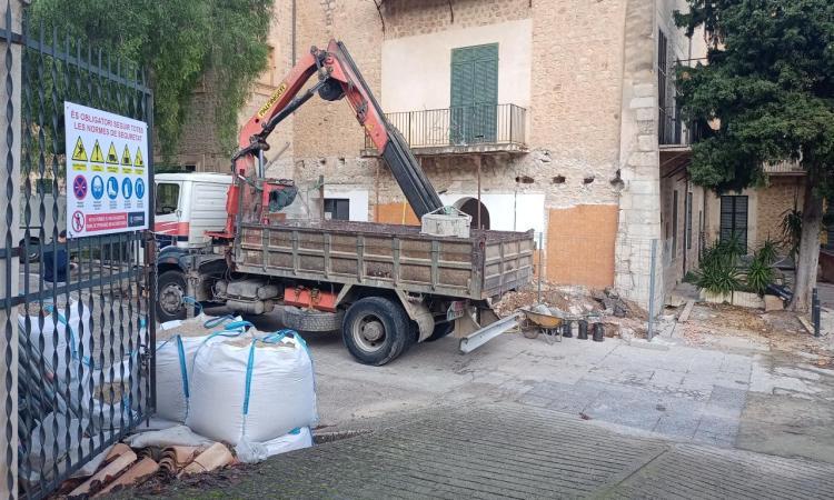 Després que el PSOE denunciàs que les obres estaven paralitzades des de fa un mes, aquesta setmana s’han tornat a reprendre i els operaris dimarts posaven una solera de formigó en una de les sales que s’està reformant. No obstant això, l’equip de govern encara no s’ha reunit amb la direcció tècnica de l’obra, el gabinet d’arquitectes de Madrid, Hijona Ravski, qui guanyà el concurs de rehabilitació de l’edifici municipal. Per tant, a l’espera d’una reunió amb els arquitectes i els tècnics municipals, «després prendrem una decisió de com procedir, perquè al setembre ha d’estar acabat sigui com sigui», recordà el batle.