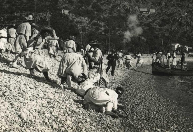 Deien que l’arena provenia del centre de la badia, però ara pens que potser venia de més enfora. La veritat és que a mi, en aquell moment, no m’importava gaire. El meu objectiu bàsic (i el de tot el públic improvisat que s’anava acumulant) era agafar el màxim nombre possible de copinyes d’aquell paratge submarí normalment inaccessible. Unes copinyes de color marronenc i blanc que no havíem vist mai abans. Encara n’hi deu haver qualcuna de les grosses per ca mumare. El fruit d’aquell desgavell de gent pescant copinyes va ser una col·lecció de tresors inaudits repartits per les cases dels assistents i una nova platja d’arena, molt més ampla, a aquella part de la badia. L’arena d’aquella nova platja era diferent de la d’abans, més grossa i clara, més bona de fer net que la d’abans que era més fina i aferradissa. Tot semblaven avantatges! El que jo no sabia és que amb aquella operació ens estaven canviant la morfologia de la platja sense demanar-nos-ho i que la platja d’en Repic, com totes les altres de la badia, sempre havia estat de bales més grosses o més petites i d’arena fina, en tot cas. Ho demostren moltes fotos, com la que acompanya l’article, presa durant una de les batalles del Firó dels anys vint.