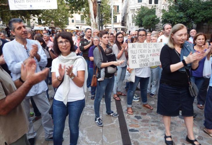 Unes 200 persones es concentraren diumenge horabaixa a la plaça Constitució de Sóller per manifestar el seu rebuig a la violència de les càrregues policials contra els ciutadans catalans que durant la convulsa jornada del dia 1 d'Octubre volien exercir el seu dret al vot en el referèndum català, declarat il·legal pel Tribunal Constitucional.