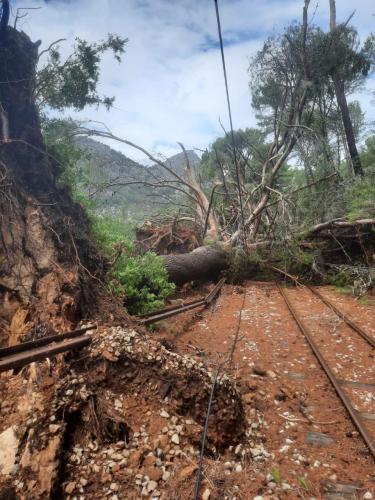 El president del Ferrocarril de Sóller, Óscar Mayol, calcula que la inversió per les avaries provocades pel temporal pot superar els dos-cents mil euros. El cap de fibló del passat cap de setmana ha deixat sense servei al Tren per, almanco, dues setmanes. El mateix dia que ocorregueren els fets, van començar els treballs de reparació que, avui dia continuen intensament.