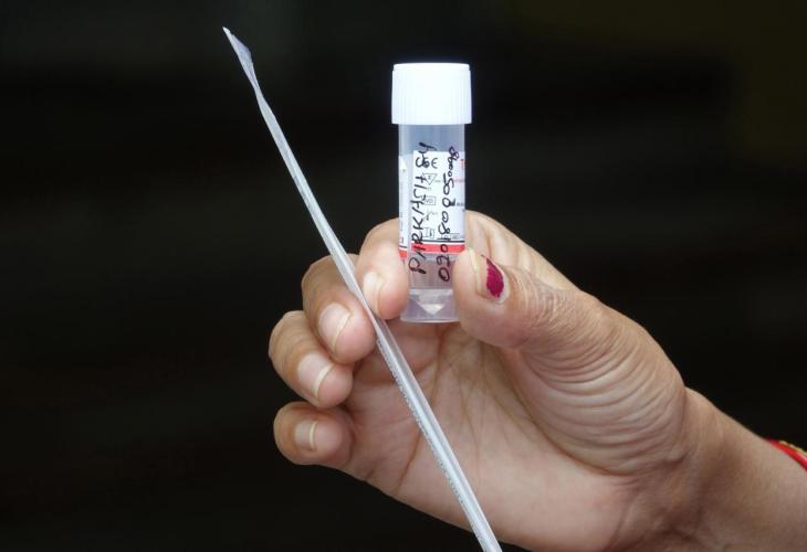 Dharamshala (India), 04/09/2020.- An Indian Health worker takes swab samples of suspected people for coronavirus COVID-19 Rapid Antigen detection testing at hospital in Dharamsala, India 04 September 2020. India is listed as one of the most infected countries worldwide with a total coronavirus positive cases. EFE/EPA/SANJAY BAID Coronavirus in Dharamsala | Foto: SANJAY BAID - HT sq - EFE - EPA