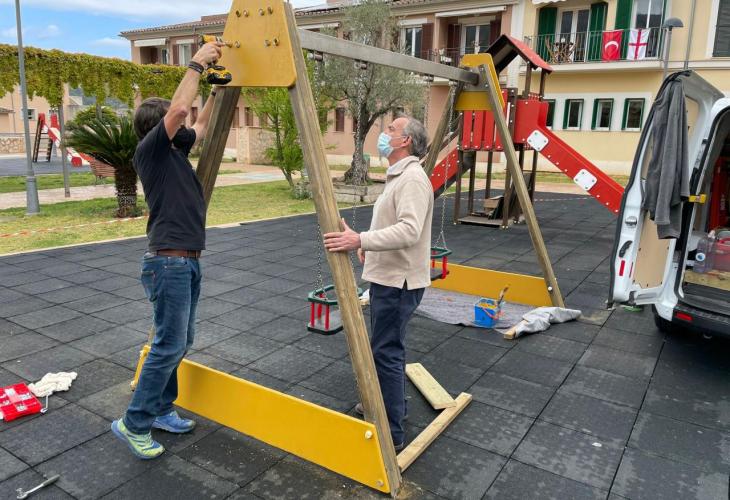 L'Ajuntament continua remodelant els parcs infantils per adaptar-los a la normativa vigent i reparar i renovar el mobiliari que s'havia fet malbé. En aquesta ocasió el batle, Carlos Simarro, ha visitat avui matí els treballs que es duen a terme al parc infantil del camp de s'Oca per supervisar com van els treballs.
