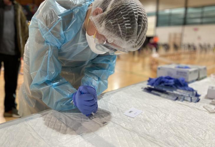 SOLLER. EPIDEMIAS. CORONAVIRUS. El primer día de cribado se salda con 1.136 test y la detección de cinco positivos. A primera hora de la mañana hubo algunas colas en Son Angelats pero el resto del día transcurrió sin esperas | Foto: A.B.