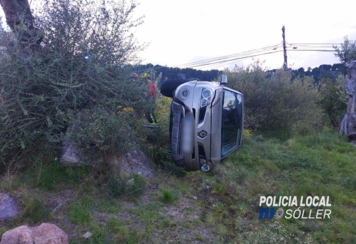 Quatre ferits en bolcar un cotxe a l'entrada de Sóller