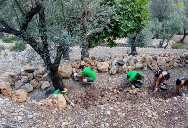 Durant dues setmanes quinze joves treballen per restaurar els marges de la finca, propietat de la fundació Maria Ferret