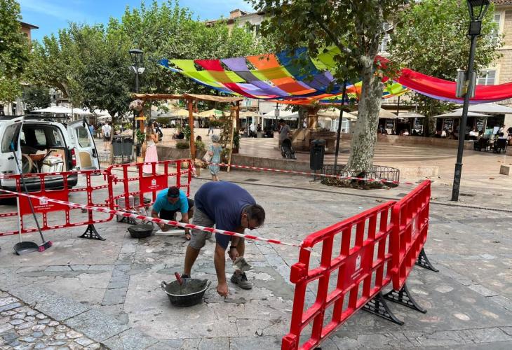 Els operaris de la brigada de l'Ajuntament han procedit avui a reparar part del paviment de la Plaça. Els treballs han consistit en refer les juntes, ja que es trobaven en mal estat explica el regidor de Béns i Serveis, Carlos Darder. Demà al matí les tasques continuaran i quedaran enllestides.