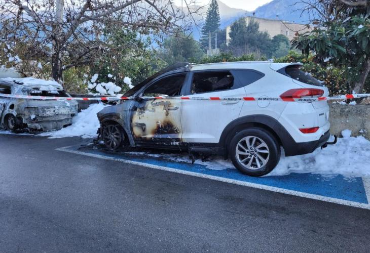Un virulent incendi calcina quatre cotxes de matinada a Sóller