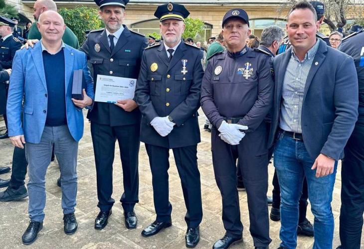 Els policies locals Biel Cardell i Alfonso Girona han estat condecorats avui matí pel Govern en un acte celebrat a l'Escola d’Hoteleria de les Illes Balears. D'una banda, Girona ha rebut la creu al mèrit policial amb distintiu blanc per 30 anys de servei amb una trajectòria destacable, mentre que Cardell ha rebut el segell que li reconeix la seva tasca com a Policia Tutor i per la tasca desenvolupada en el programa d'Educació Viària.
