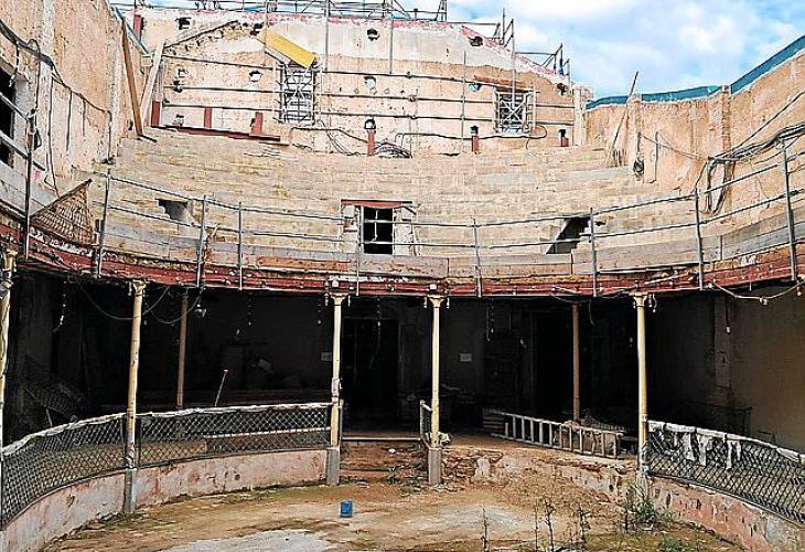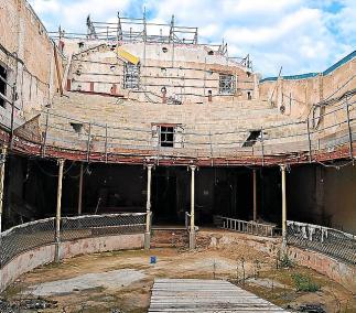 SOLLER - La façana del Defensora queda sostinguda per set columnes interiors. L’Ajuntament confia tenir l’esquelet acabat al mes de juliol per obrir el carrer al trànsit després d’un any i mig de l’esfondrament. Estat actual del que queda del teatre després d’un any i mig de la desfeta del teatre Defensora | Foto: I.C.