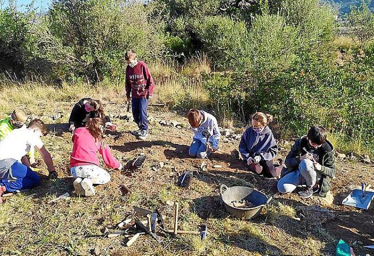«La primera excavació es va fer als anys 50 a càrrec de l’arqueòleg Bartomeu Ensenyat. Va trobar un santuari prehistòric que, en aquells moments, va ser dels primers que s’excavaren. També descobrí dues cases amb molts d’objectes interessants que ara són al Museu de Sóller. Destaquen: una figura de terracota grega anomenada tenagra, que representa una dona rentant-se; també es recuperaren braçalets de bronze, ceràmiques típiques de l’època tant duites de la Península com de Grècia o Itàlia, a més d’hams de pescar de bronze. Són coses curioses ja que donen informació de l’època. Degut a les obres, el santuari ha desaparegut. El jaciment s’abandonà i la majoria de gent no coneixia res. Arran del projecte educatiu, vàrem poder demanar una subvenció al Consell de Mallorca amb la intenció de, mitjançant un equip de restauradors, restaurar i documentar les restes que quedaven. També milloràrem el lloc: hem posat una reixa, uns bancs i panells informatius. Volem ampliar la zona visitable a la part d’abaix, que és 10 vegades més gran que la zona on som ara», explica.