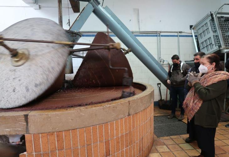 La consellera d'Agricultura Mae de la Concha ha visitat avui matí la finca i la tafona de Can Det. De la Concha ha vengut a Sóller per conèixer 'de primera mà' com funciona la collita d'oliva i també l'elaboració d'oli a la Serra de Tramuntana. El fet és que l'any passat ja acudí a la finca de Can Det quan la família rebé el premi a la Millor Olivera Monumental d'Espanya 2020, però no pogué dedicar temps a veure com feien feina. És per això, que ha volgut tornar i els demanà als de Can Det fer-los una altra visita.